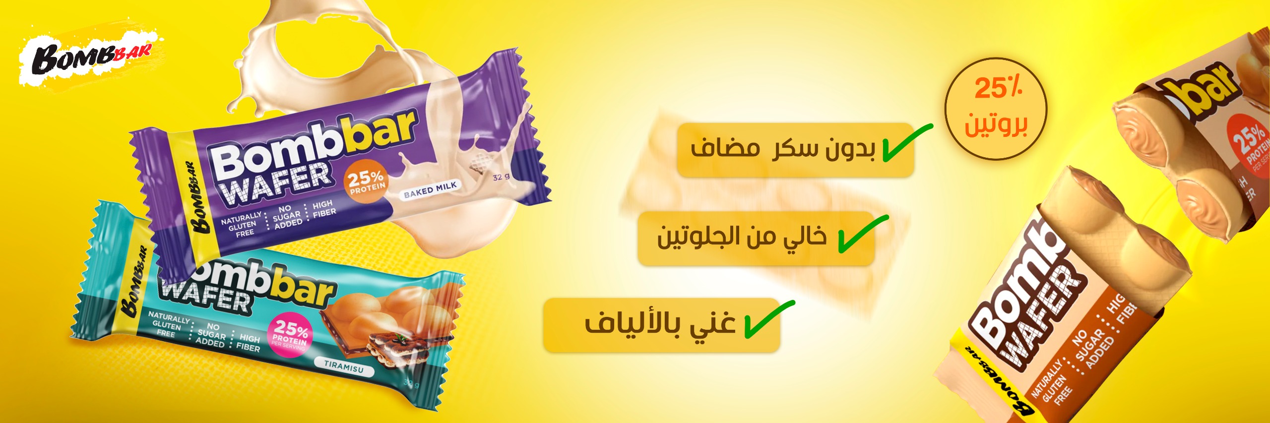 بومبار كوكيز براوني الكرز غني بالبروتين والالياف والكولاجين 22%بروتين بدون سكر 50 غم
