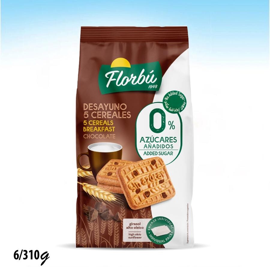 بسكويت إفطار من 5 حبوب مع رقائق الشوكولاتة ، بدون سكر مضاف. وجبة فطور صحية شاملة لأولئك الذين لا يستطيعون أو لا يرغبون في تضمين السكر في نظامهم الغذائي اليومي. رقائق الشوكولاتة الخالية من السكر تجعلها منتجًا رائع المذاق.