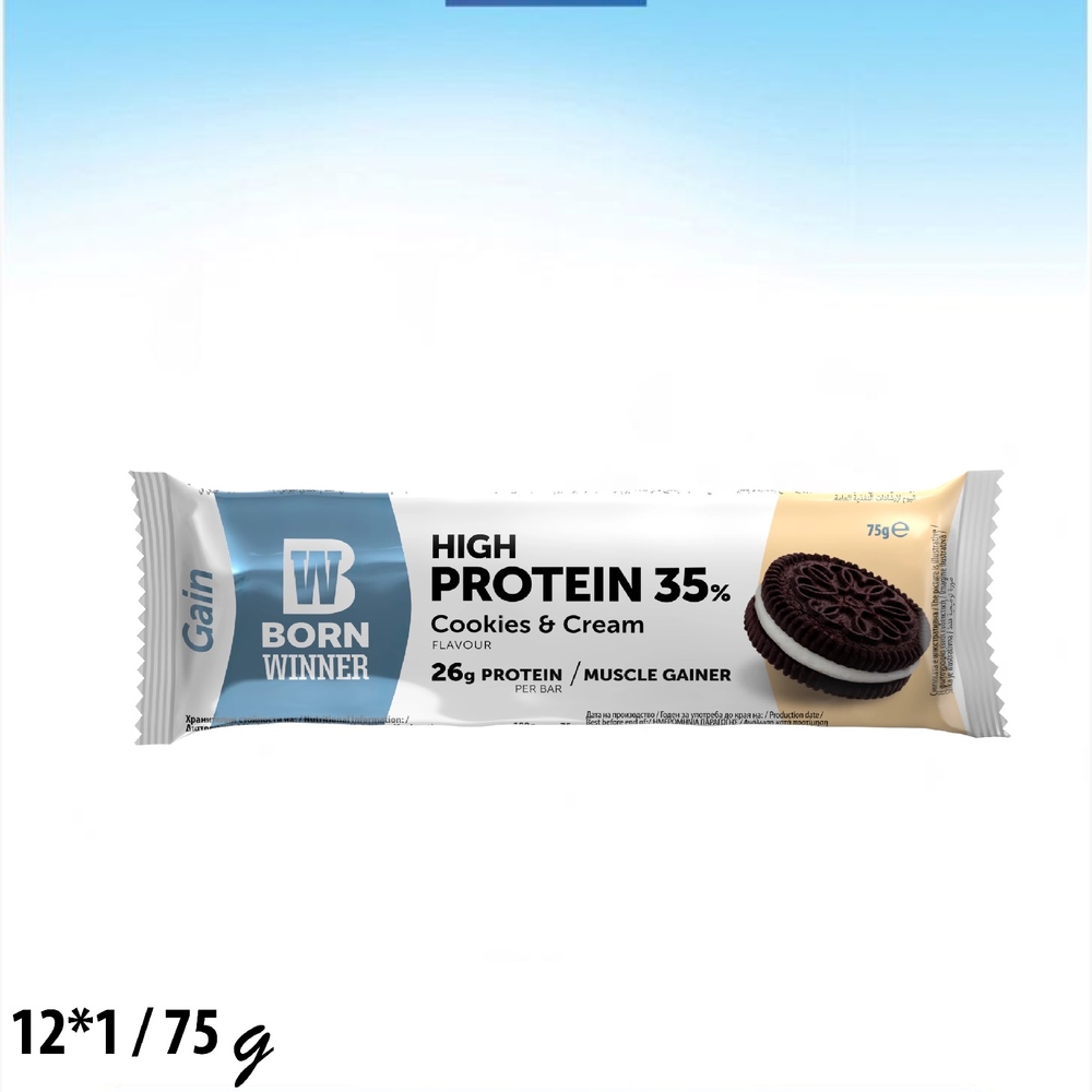 نسبة عالية من البروتين 35%، نكهة الكوكيز والكريمة 26 جرامًا من البروتين/زيادة العضلات في كل لوح