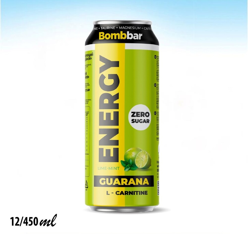 مشروب طاقة (GUARANA) الكارنتين بالليمون والنعنع بدون سكر غني بالمغنيسيوم والكافيين والتورين 450 مل