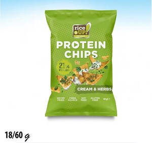 رايز شيبس 21% بروتين بنكهة الكريمة والأعشاب غني بالألياف خالي من الجلوتين والصويا 60 غم