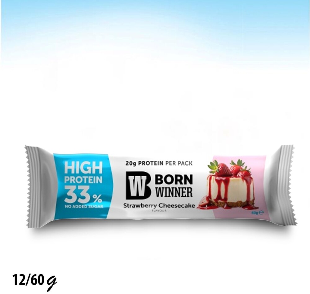 بروتين بار بورن وينر 20 غم بروتين بنكهة الشيز كيك والفراولة بدون سكر 60 غم