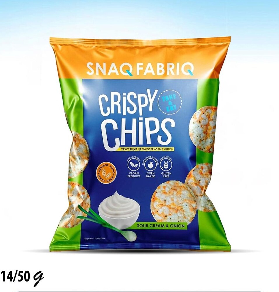 شيبس سناك فابرك كريسبي النباتي بنكهة الكريمة الحامضة والبصل 6% بروتين بدون ( جلوتين,صويا) 50 غم