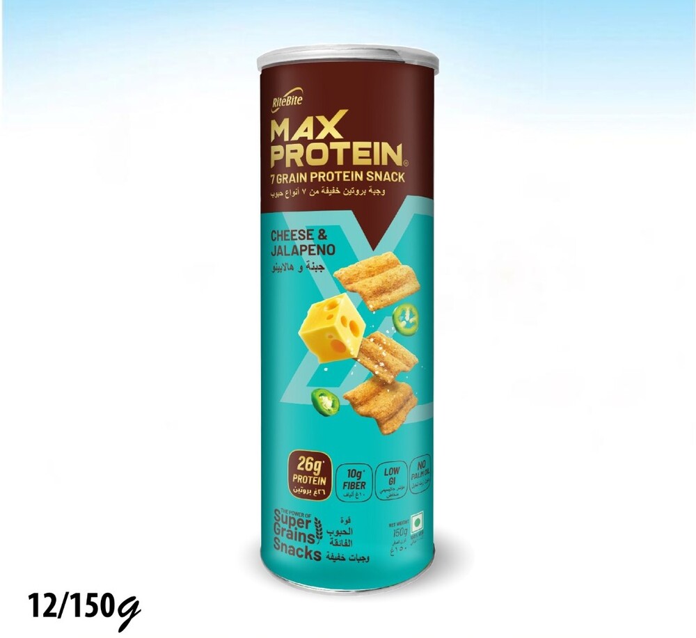 شيبس ماكس بنكهة جبنة الهلابينو 26% بروتين غني بالألياف بدون زيت النخيل 150 غم 1*12